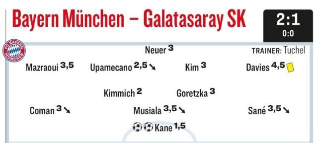德国媒体赛后评分,无一例外都是凯恩最佳。