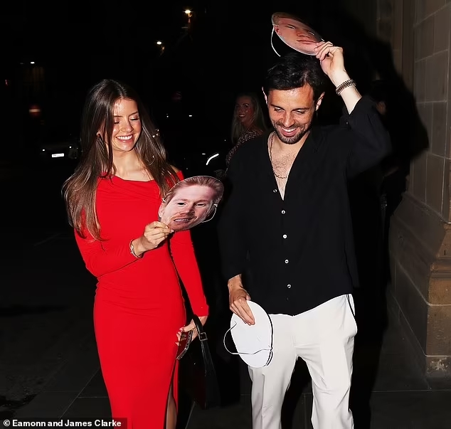 福登、B席和哈兰德也各自携伴侣出席派对,B席和妻子还在把玩着德布劳内的面具,哈兰德和女友则在凌晨1点前乘坐出租车离场。